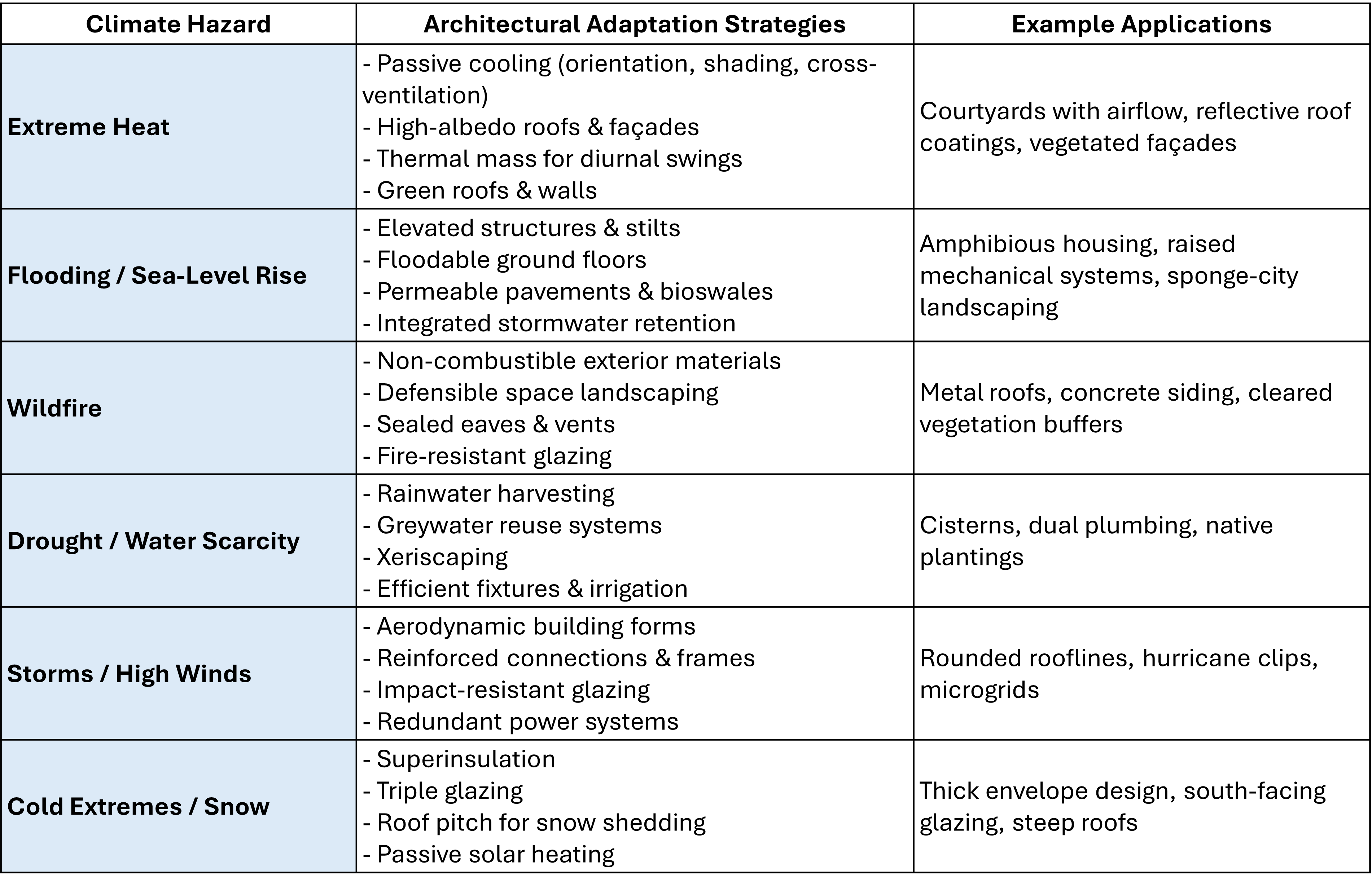 Design for projected heat, precipitation, and wind conditions rather than historic baselines.